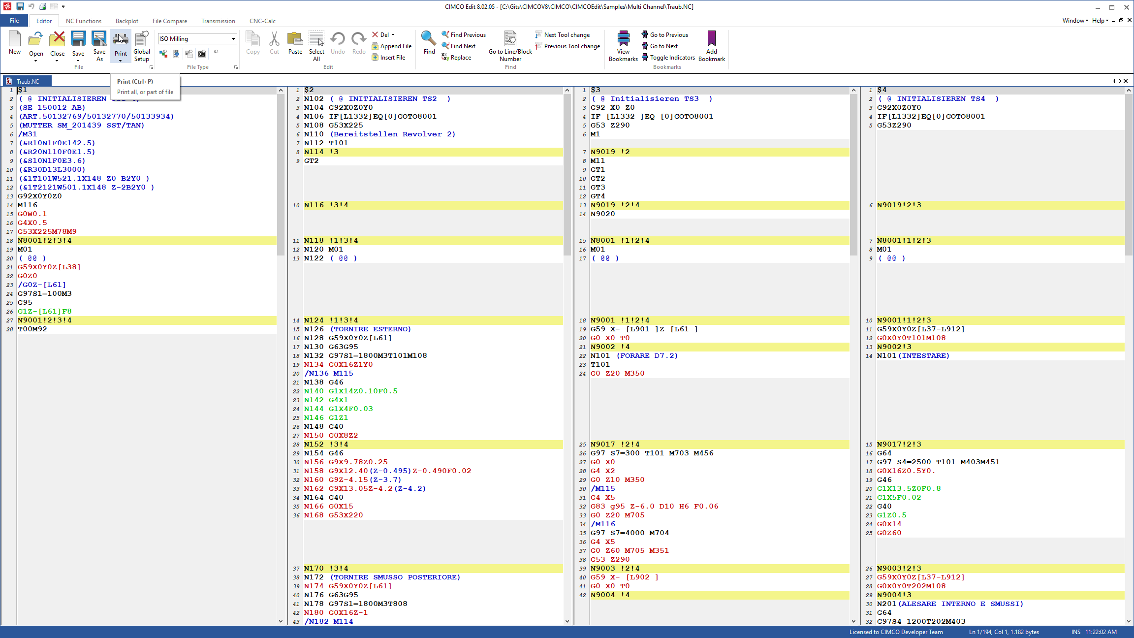 Pro uživatele, kteří potřebují vytisknout vícekanálové programy na papír, je CIMCO Edit nyní dodáván s plnou podporou vícekanálového tisku v režimu na výšku i na šířku.