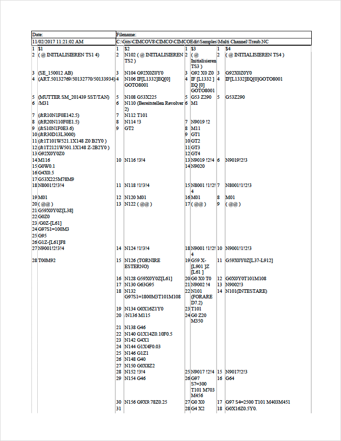 Nyní možnost zobrazit a vytisknout více-kanálový NC Program v jednotlivých sloupcích