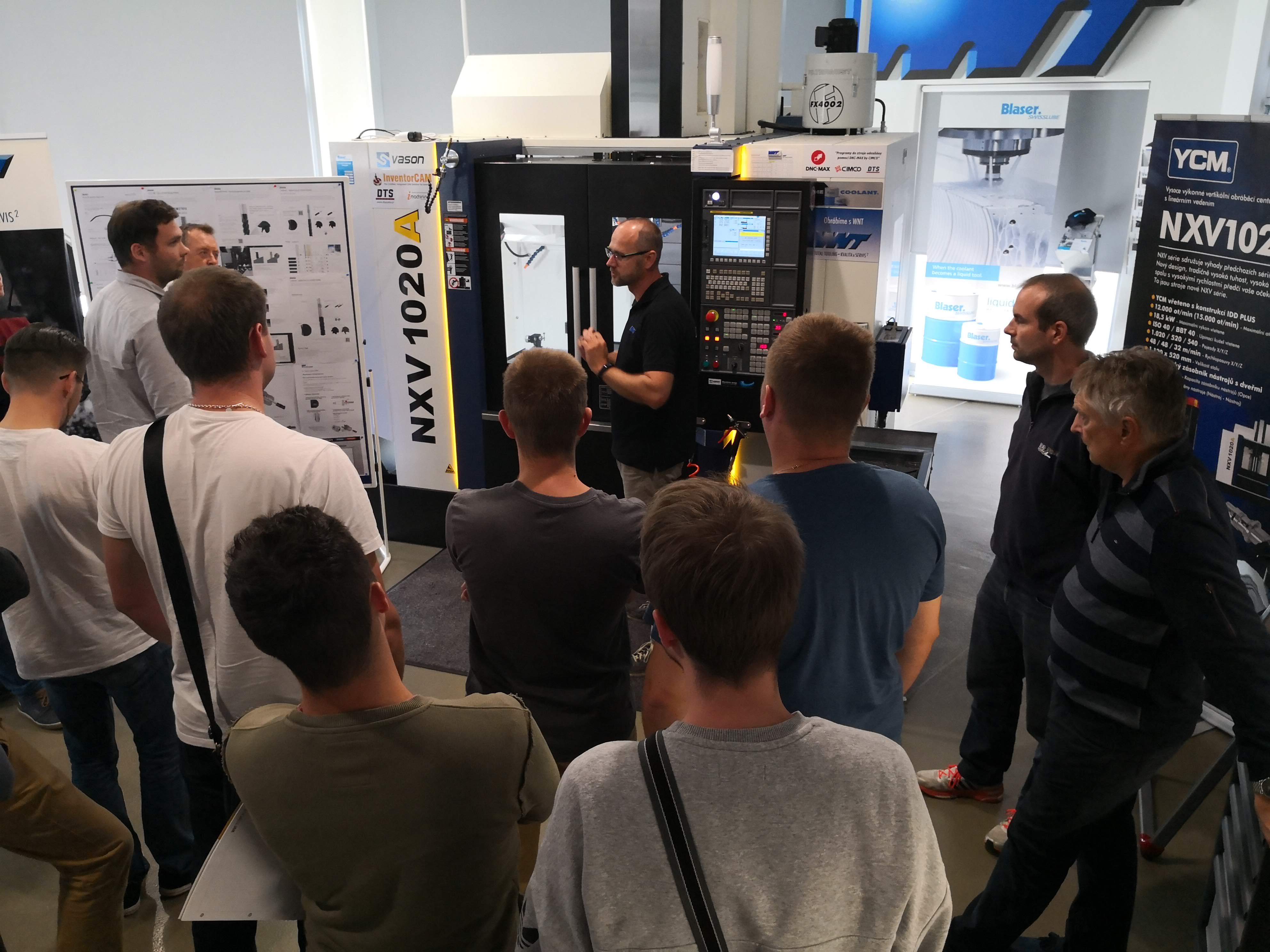 Technicky nabitý program byl doplněn praktickým obráběním na strojích YCM: NXV1020A vertikální obráběcí centrum a GT250MA soustruh s poháněnými nástroji a C-osou.