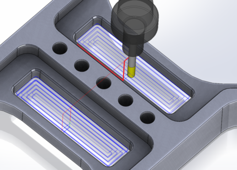 Modul 2osé frézování je typickou volbou pro firmy se standardní strojírenskou výrobou, sériovým obráběním přesných mechanických dílců, skříňovitých součástí, opracováním odlitků atd. K definování obráběcích operací se využívá 2D geometrie nebo obrysových kontur na 3D modelu. Vybraná geometrie zůstává asociativně spojena jak s modelem, tak i s vytvořeným NC programem. Stejně tak zadané hloubky obrábění zůstávají provázány s tvarem modelu. Základní 2D frézování obsahuje funkce pro obrábění kontur, kapsování a rozpoznání kapes, drážkování, vrtání, závitování včetně automatického vrtání a zajímavé funkce pro frézování jednoduchého 3D obecného tvaru pomocí profilové a vodící křivky. Dále umožňuje automatické nalezení a obrobení rovných ploch nebo rovného dna. Tyto funkce nesmírně urychlují přípravu programů pro obrábění prizmatických dílů, jak při hrubování, tak při dokončování. Uplatňují se výborně v prototypové výrobě a výrobě komplikovaných, členitých obrobků.