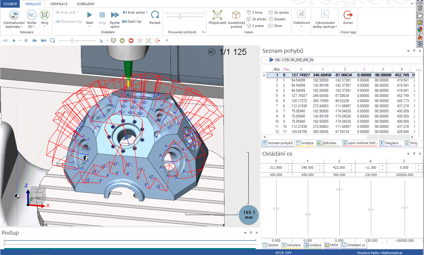 Kontrola je důležitá nejen kvůli kolizím, ale rovněž pro zjištění, zda díl můžeme na daném stroji vůbec vyrobit. SolidCAM těmto problémům předchází tím, že již v době před generováním programu bere v potaz omezující podmínky stroje a zapracovává je do programu. Reálná simulace skutečného stroje je standardní součástí 5-osého modulu. Pokud zpracováváme 2-osé nebo 3-osé obrábění s polohováním dílce ve 4. nebo 5. ose, je simulace kinematiky stroje také vhodným doplňkem.