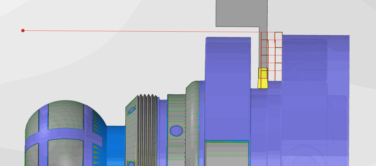 SolidCAM Soustružení pracuje s aktualizovaným polotovarem po každé operaci. Tím optimalizuje dráhu nástroje dle polotovaru, což má za následek, že vygenerovaná dráha nástroje neobrábí vzduch.