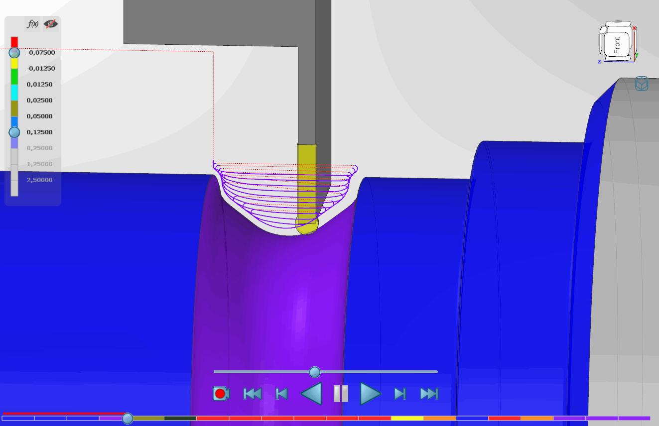 Operace generuje dráhu nástroje pro obrábění na čelních konturách.