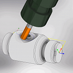 Vytvoří operaci vrtání s možností vyosení nástroje. Vytváření operace je extrémně rychlé, protože není třeba vybírat středy vrtání.
