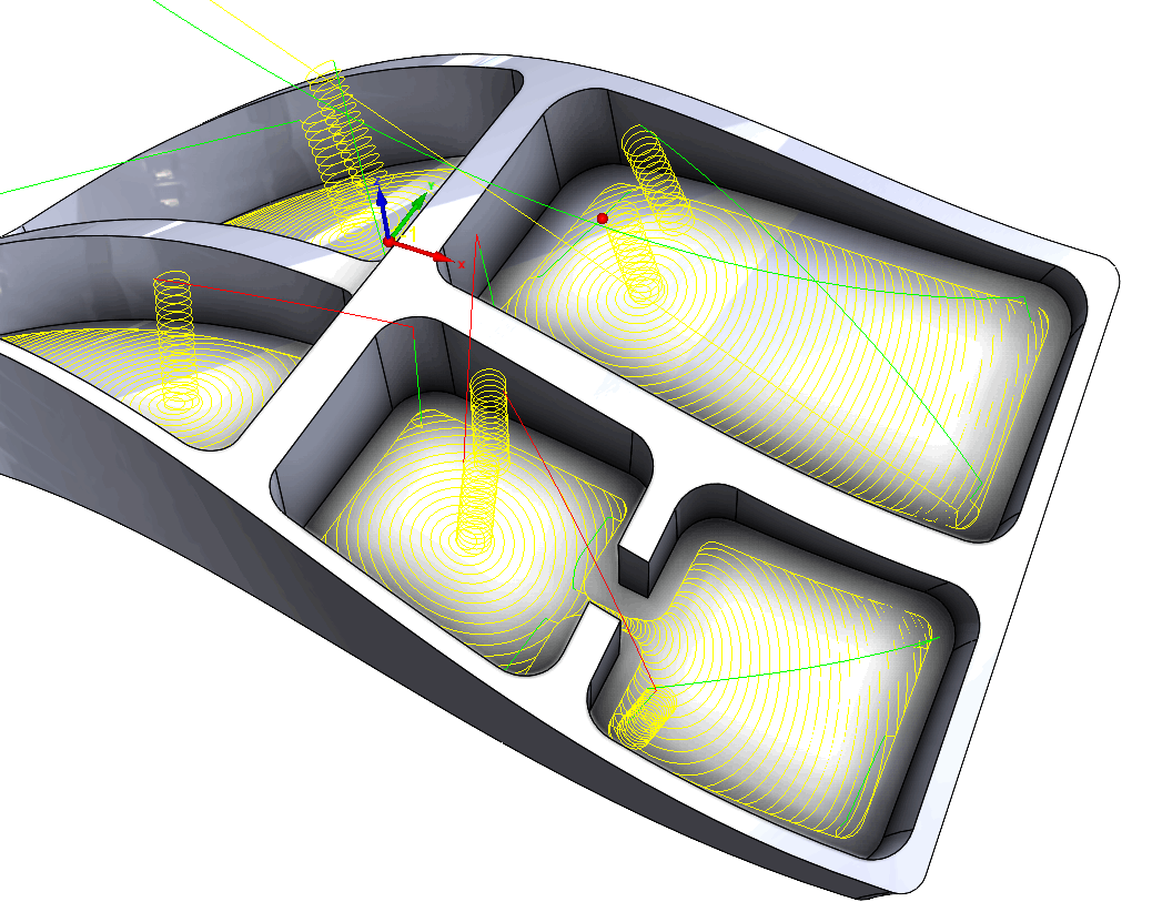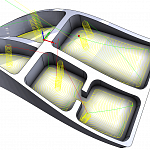 Modul Geodesic Machining generuje dráhu nástroje s konstantním krokováním pro jakoukoli skupinu povrchů nebo celý model bez ohledu na typ nebo tvar povrchu. Geodesic Machining je dokončovací operace, při které lze zpracovat povrch nebo skupinu nekonečných povrchů nebo celé těleso. Dráhy nástrojů lze generovat ve 3 osách, 4 osách a 5 osách.