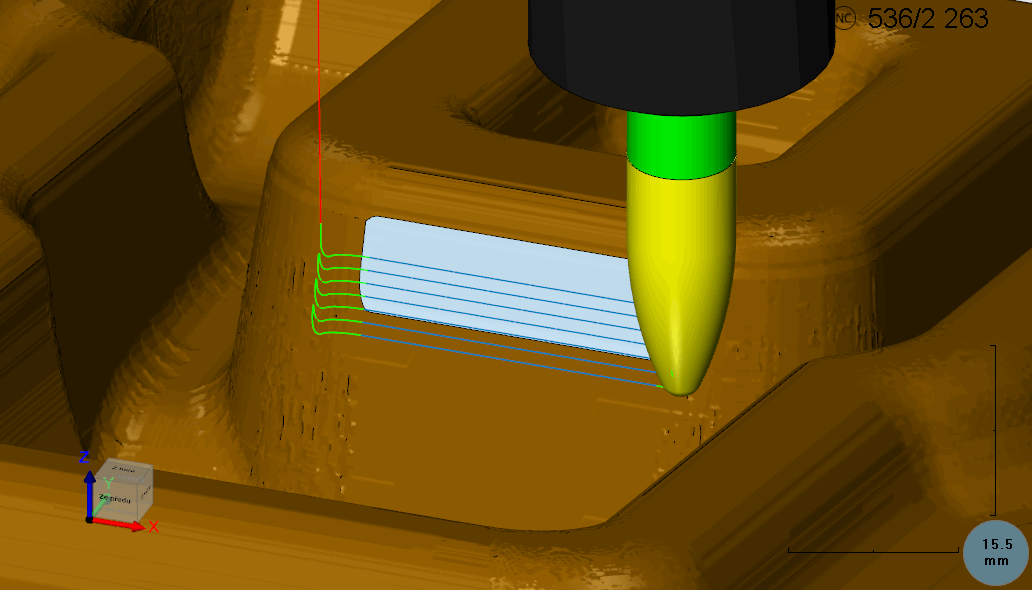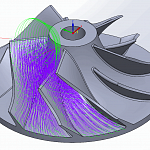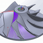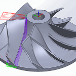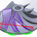 Vytvoření drah nástroje pro obrobení lopatkového kola je pomocí této operace velice rychlé a efektivní. Dráhy nástrojů jsou generovány pouze pro 5 os.
