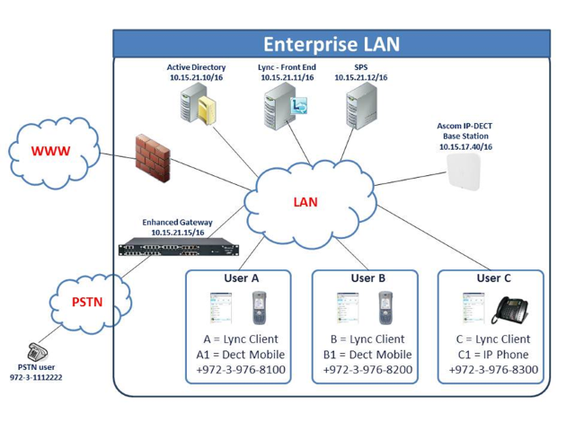 IP- DECT systém může být brán jako gateway mezi VoIP a DECT. Každý DECT handset je funkčně viděn jako IP- telefon. IP- DECT systém se skládá z několika plug & play prvků soustavy. Management je prováděn přes internetový prohlížeč. V jednom systému mohou být instalovány klasické i nové IP- DECT základnové stanice. Roaming a handover je mezi IP- DECT a tradičními základnovými stanicemi připojenými k IP- DECT Gateway plně podporovaný. Napájení IP- DECT základnových stanic je možné pomocí PoE. Standardní Ethernet kabel může být dlouhý až 100 metrů bez nutnosti použít opakovače. Tradiční základnové stanice, připojené na IP- DECT Gateway, se můžou umístit až do vzdálenosti 1,5 km bez napájení. Analogovou PBX je možné připojit do IP-DECT systému pomocí Analogové VoIP gateway, FXO-A8.